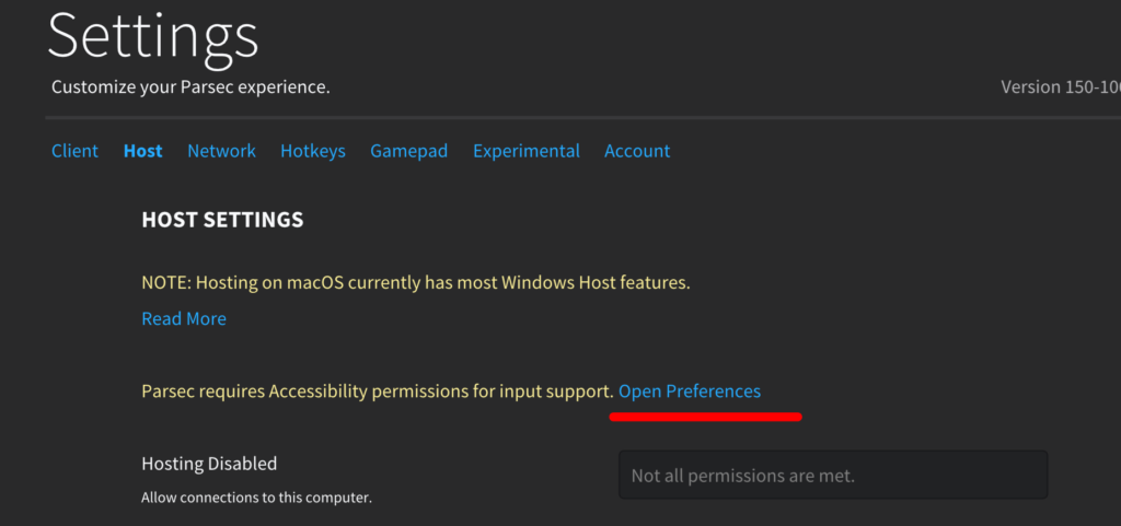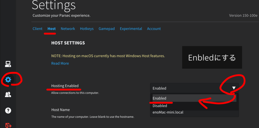 もう一度Parsecのソフトに戻るとさっきまで設定できなかった項目がいじれるようになっています。