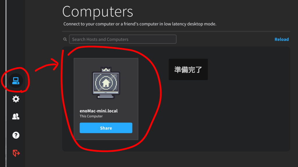 もう一つのパソコンでも同じようにセットアップが完了すると、接続したいPC名が表示されているはずです。